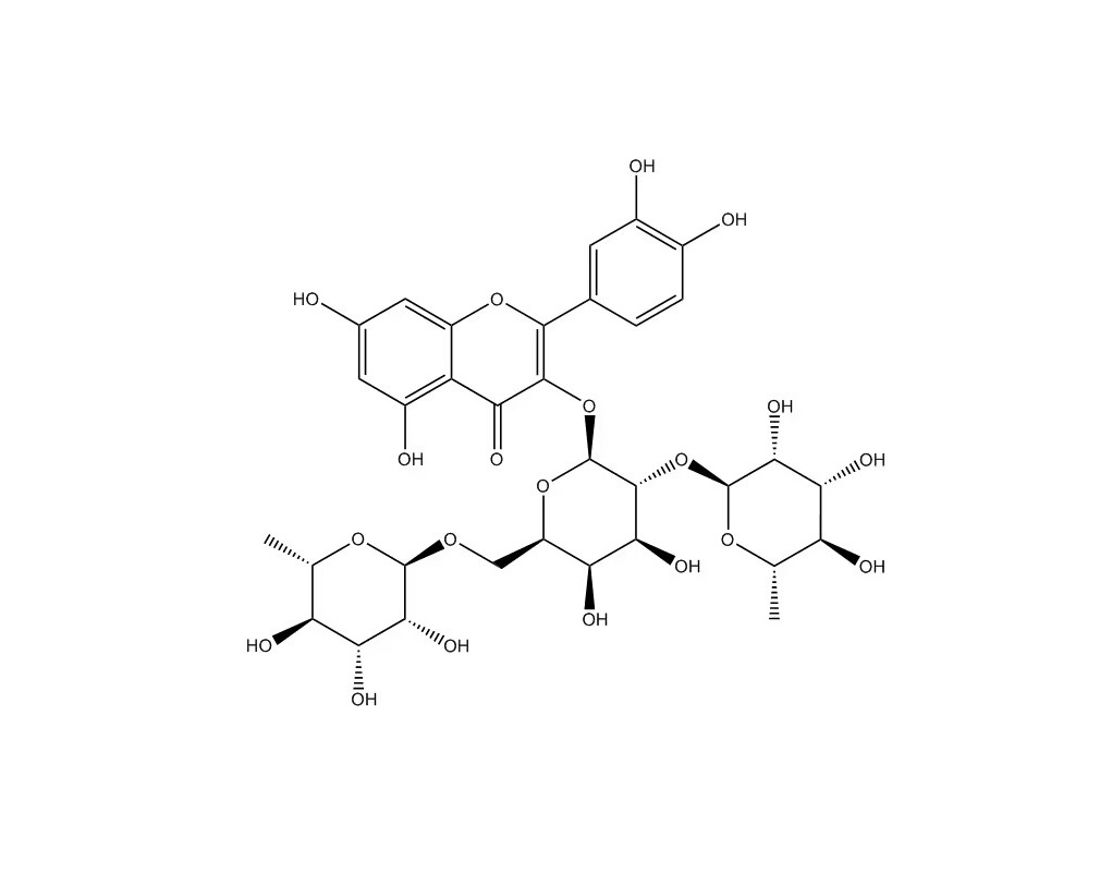 【英文別稱】 quercetin 3-O-(2'',6''-α-L-dirhamnopyranosyl)-β-D-galactopyranoside